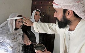 پیشوای ایزدی در حال برکت دادن به یکی از زنان ایزدی، قابل بازیابی از https://www.asriran.com/fa/news/349793/