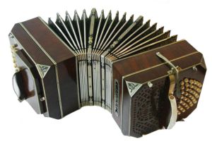 در سال ۱۹۲۵ یک نوازنده آکاردئون ایتالیایی الاصل به نام چارلز پگوریکه ساکن پاریس بود، آکاردئونی طراحی کرد که در آن هر دکمه بدون توجه به حالت باز یا بسته بودن ساز یک نت خاص را اجرا مینمود. این ساز که «کروماتیک» نامیده میشد، در کلیه اجراهای تانگوی کشور فرانسه به کار گرفته میشد. آستور پیازولا در زمره نوازندگان چیرهدست این ساز است که نامش مهر ساز تانگو را بر آکاردیون باندونئون حک کرده است[۴].