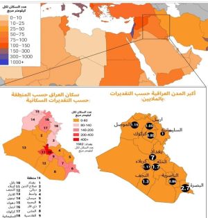 پراکندگی جمعیت در عراق، قابل بازیابی از https://fanack.com/ar/iraq/population-of-iraq+/
